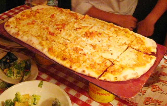 ピッツァ。巨大なカンを台にして豪快に出てきました。