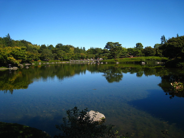 日本庭園の大池。もう少し経つと紅葉が素晴らしいです