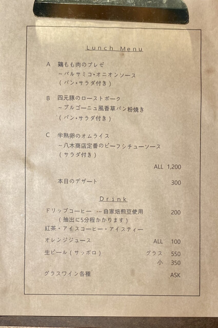 ランチタイムに比べるともちろん料金水準は高いが、そこは八木商店。納得感はある。店員さんも昼の大忙しモードに比べてリラックスした対応で、ゆったり時間が過ぎていく感じが心地よい。我が家ではなぜか八木さんはランチの店、と位置付けられていて、ディナーは他の店へ行っていたが、ディナーで使う機会も増えそうだ。
