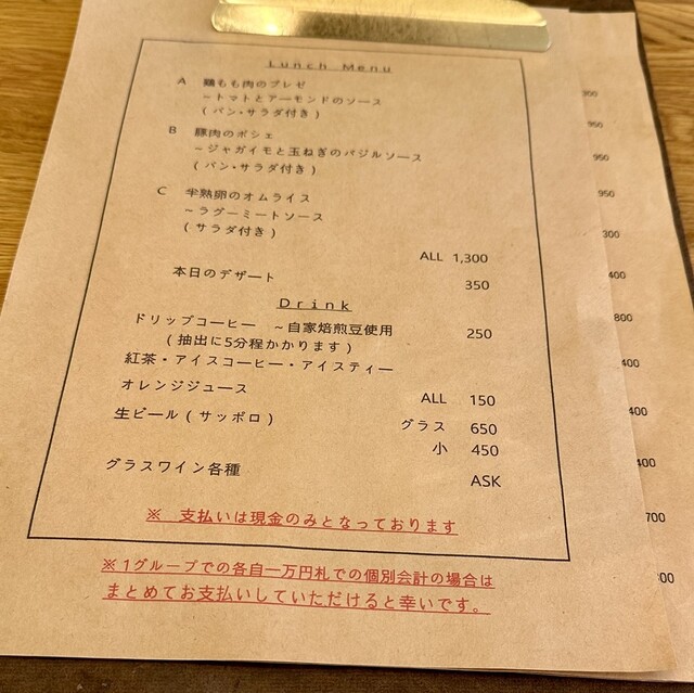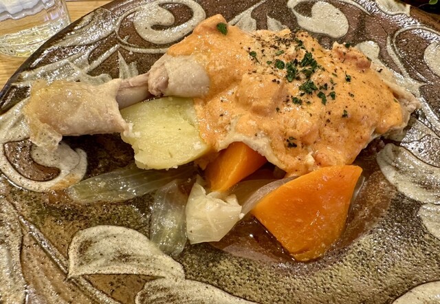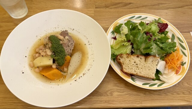 ランチは3種類。Cのオムライスは定番でAとBは二週に一回程度内容が変わる。店の公式facebookで紹介されるので気になる方は見てから行くと良い。カップルならAとBを注文してシェアするのがおすすめ。豚肉か鶏肉を使い一品は煮込系の料理になることが多い。ポテはいわゆる豚肉のポトフだが、この店らしく肉も野菜も柔らかく優しく煮込まれとても美味しかった。