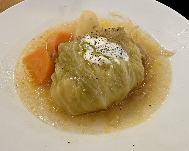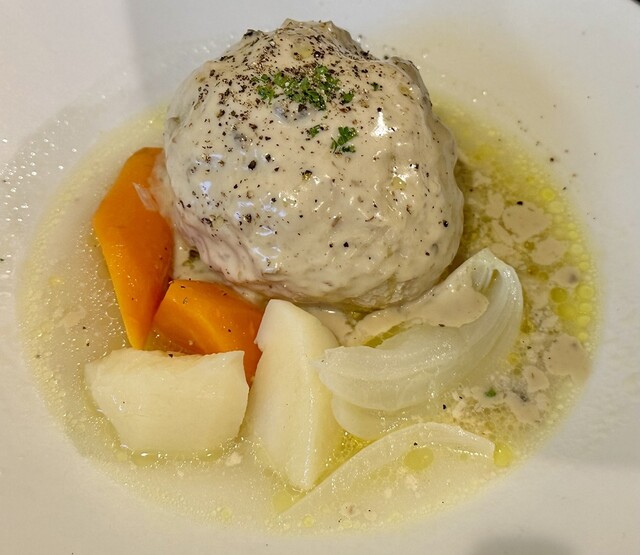 鶏肉のクネルはつくねのようなふわっふわの仕立てでこの店の特徴的な美味しいスープととても合う逸品。ローストポークはとにかく柔らかくジューシー。ボリューム感も十分で楽しませてもらった。