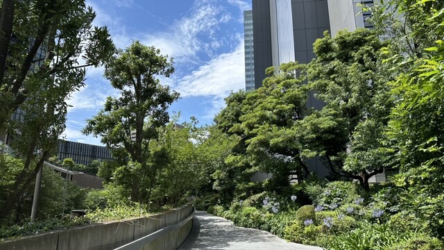 ちょっと足を伸ばすとソニービル裏からシンクパークまで緑の多い散策道となっており、腹ごなしの散歩にはぴったり。