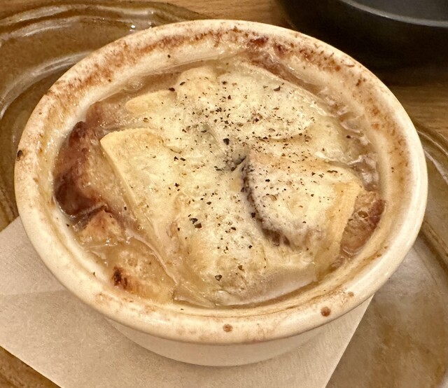 ・柔らかく煮込んだ牛すじ肉とラクレットチーズのオニオングラタン(1,400)