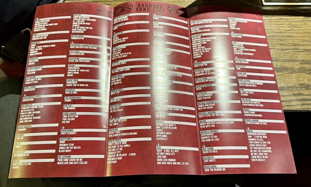 ドリンクやフードのメニューに並んで曲のリクエストメニューがあるのもライブハウスならでは。個性あふれるミュージシャンによる迫力あるステージを堪能した。ステージが終わるとミュージシャンがテーブルをグータッチして回るのも楽しい。