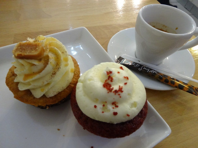 その中で見付けたカップケーキ屋さんで、キャラメルアップルとレッドベルベット、エスプレッソを♪