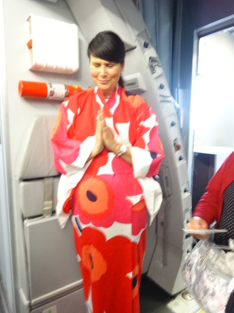 行きはJAL+英国航空、帰りは英国航空+フィンランド航空だったので、ヘルシンキで乗り継ぎ。CAさんがマリメッコ柄の浴衣着てました♪