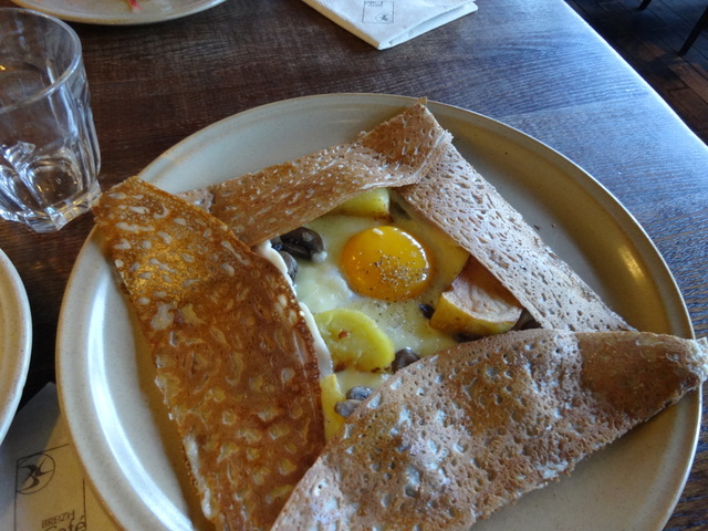 お腹が空いてたので、10種類くらいあるチョイスから1番ボリュームがありそうなポテト+チーズ+ほうれん草が入ったガレットを♪
