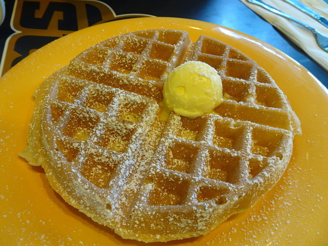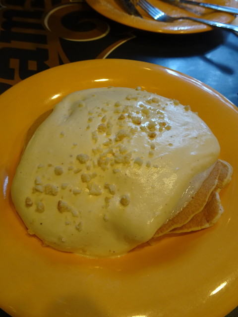ランチは大人気のパンケーキ屋さんでバナナ+マカダミアナッツのパンケーキ、ワッフルを(^^)