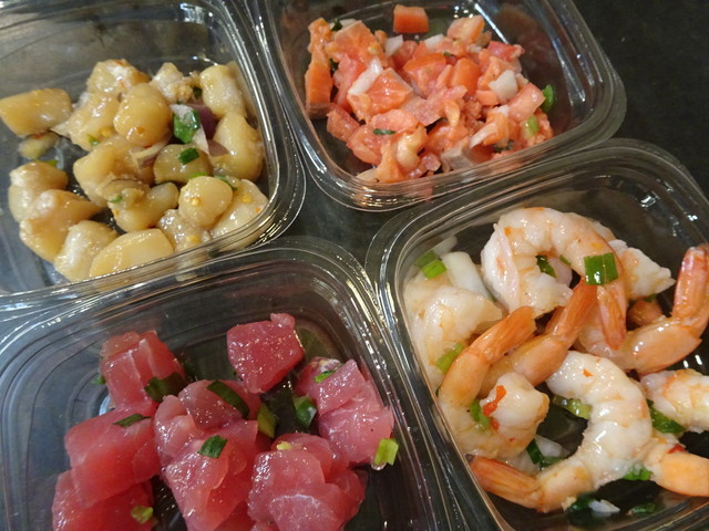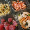 オーガニックスーパーのお総菜コーナーでいろんな種類のポキを食べ比べ♡ エビとホタテが好み♪
