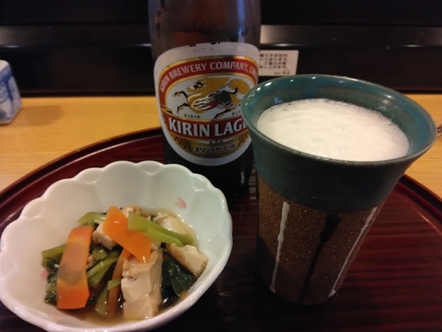 まず前菜が出ます。この日は野菜と豆腐の煮物。甘みのあるやさしい出汁がいい感じ。