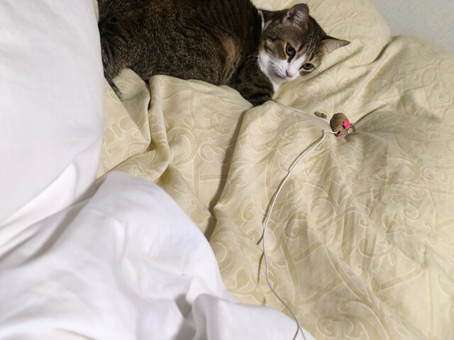 (ミユさんに結構ガッツリ噛まれていたから、頭触って警戒されたかな?と思ったけど就寝時に入ってきたから甘噛み認定をします)(コロナの時代に買った抗生物質が初めて役に立ちました)