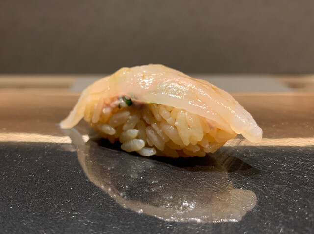 形のいい米粒に、砂糖無使用、赤酢に若干の米酢を加えて切られた舎利は、やや硬めで、味わいはさっぱりキリリ。
