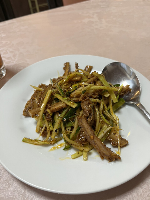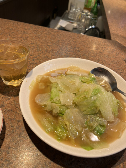 レタスとにんにくのオイスターソース炒め、桂花陳酒