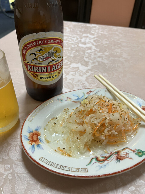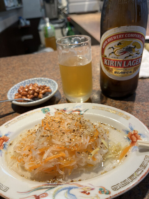 冷奴の怪味ソースかけ、瓶ビール・キリン