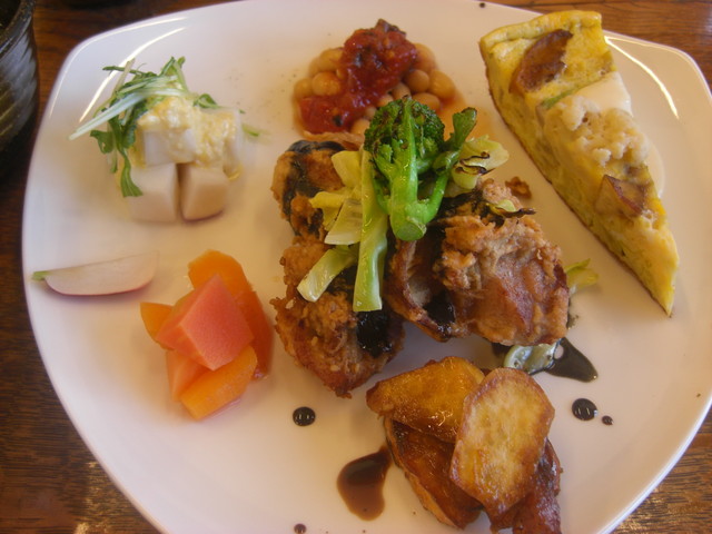メインの日替わりランチは以前は8種類くらいの料理がちょっとずつ載ったプレートランチだったのが、前菜&メインのスタイルに変わっていた。以前のやり方だと客はさばききれないのだろう。