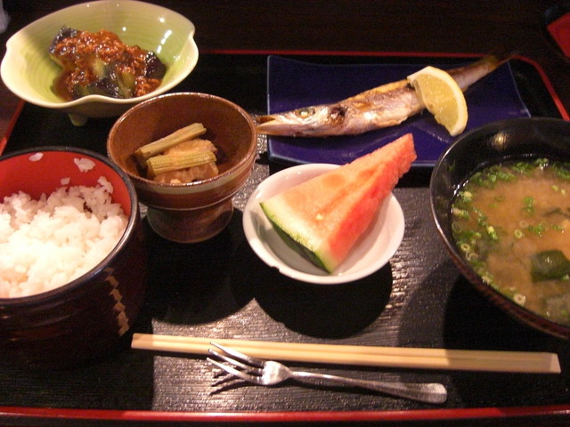 再訪した、今日の日替わりは「かます塩焼き&揚げ茄子の田楽みそ」いいじゃないか・・非常にヘルシーなメニュー。