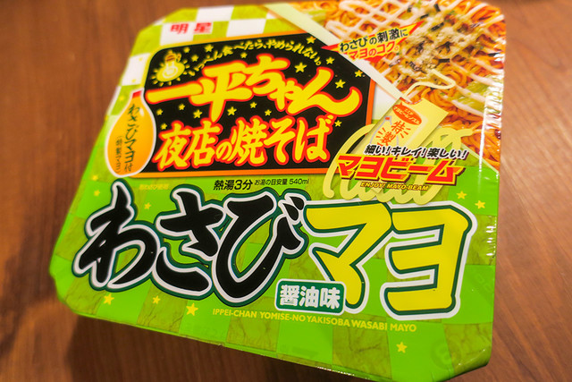 「一平ちゃん夜店の焼そば わさびマヨ醤油味」。