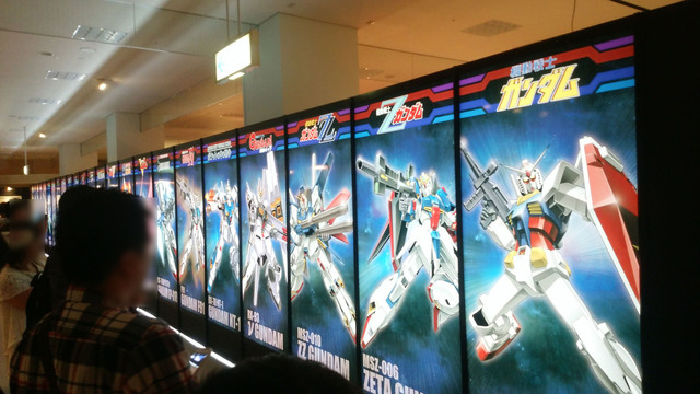 通路に歴代ガンダムが貼ってあります
