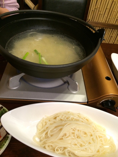 お連れ様は定番の鴨団子汁を注文。やはりここのあごだしのつけダレは最高に美味しいです‼️