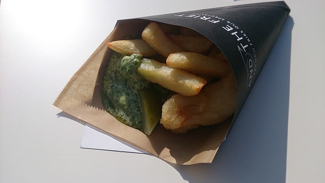 広尾の人気店のポテトフライです。ポテトフライとピクルスとフィッシュフライと選べるディップがセットになって600円でした。ポテトは外はカリカリで中はふんわり。ディップはバジルを選びましたが、コクがあってとても美味しかったです。行列ができるのもわかりますね。