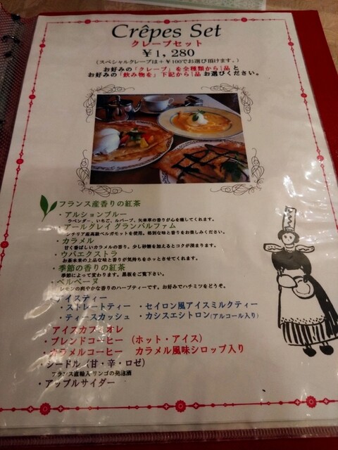 フレンチデリプレート、クレープかケーキ、ドリンクのセットです。