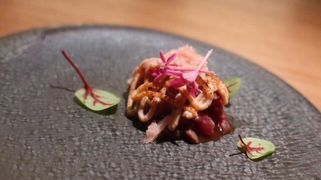 3. 北海道産生ラムのタルタルとタスマニアサーモンのモンブラン仕立て