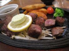 ちなみに、ハンバーグ1260円、サイコロステーキ2100円で、サラダ、ライスが付きます。