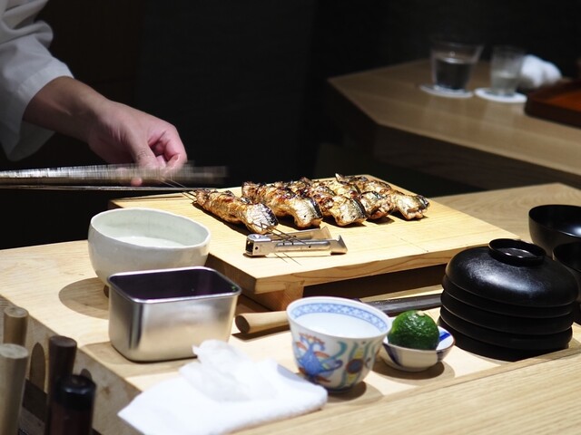 3人で、鰻×2、牛肉、吉次、だし巻き、ハンバーグをオーダー。注文を受けてから目の前で作ってくれるので、ワクワク感もスパイスとなる。