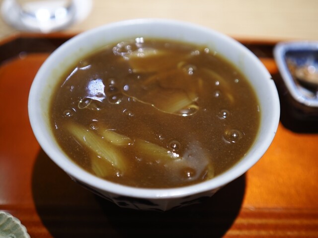 今年は小ぶりなので工夫したとのことで、蒸した餅米の上に骨のない腸もある焼き秋刀魚が乗って出てきた。秋刀魚の旨味汁を餅米が受け止める仕組み!これ素晴らしい!
