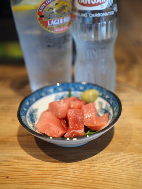 続いて生本マグロブツ、中トロ部位はトロォ~ん、赤身部位はしっかり。焼酎によし日本酒によしの大島やさんのマストアイテム!