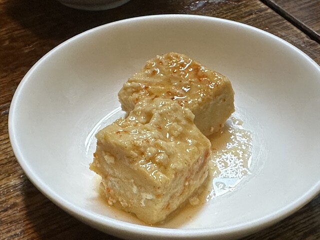 まずは、腐乳とピータン、豚の尾。どれも美味しい。尻尾食べたことないから、変な言い方だけど、今までで一番美味しい。ピータンも普段食べてるピータンより卵の味が濃くて美味しい。腐乳でちびちび舐めるだけだけど、塩っぱくて美味しい。