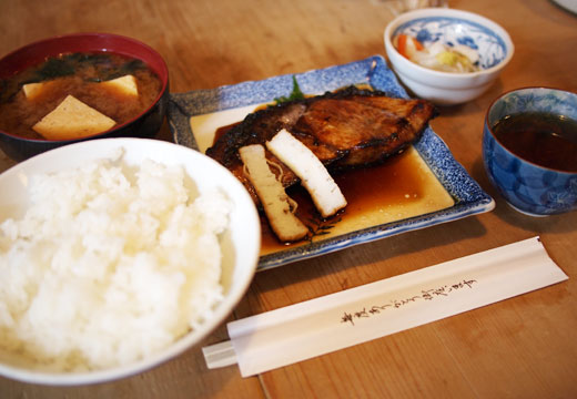 ランチメニューの中から大好きな「ぶり照焼定食」(930円)を注文してみたのですが、炭火で焼かれたぶりは脂が程よく乗っていて、めちゃくちゃ美味しいです。大きな豆腐がいっぱい入った赤だしの味噌汁も絶品だし、漬物もいい味わいで、ご飯がやたら進みました。これで1,000円以下なら大満足でしょう。魚が好きな人には是非訪れてもらいたいと思える、素晴らしいお店でした。