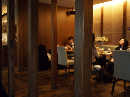 扉をくぐって中に入ると、一軒家を利用した広い空間と暗めの照明が、非常にいいムードを醸し出しています。ゆったりと席が配置されているのも好印象ですね。メニューを見ると、お昼を食べたところなのに美味しそうなカレーやおばんざいに心奪われます。和の食材をふんだんに取り入れたスイーツも豊富にあり、かなり迷ってしまったのですが、今日は「白胡麻のブランマンジェ」と「豆乳カプチーノ」をオーダーすることにしました。
