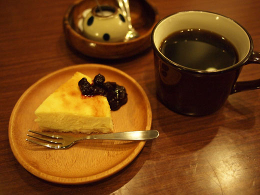 話が盛り上がってしまい、あっという間にお開きの時間。最後は気になっていた「チーズケーキ」(400円)と「珈琲」(400円)を二人そろっていただきました。手づくりジャムをかけたベイクドチーズケーキは最高ですね。