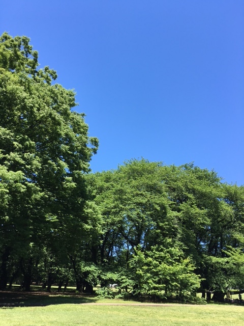午前、砧公園へ。素晴らしい木々の緑、深くそして鮮やか。