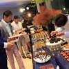 会場に用意された素晴らしいケータリングは、浜松を代表するイタリアン「BRILLANTE IL SUZUKI ブリランテスズキ」さん。フランスのノワール・ド・ビゴール豚の原木の生ハムをガーリックバゲットに添えてサーブ。薄くスライスするとしっとりした食感で、ほど良い塩味と独特のナッツ香が感じられ、とろけるような口当たりで上質な脂が楽しめます。