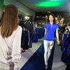 中央に敷かれたブルーシートの上でモデルさんたちによる新作ウェアのファッションショー。4名の美女たちのウォーキングに注目です。
