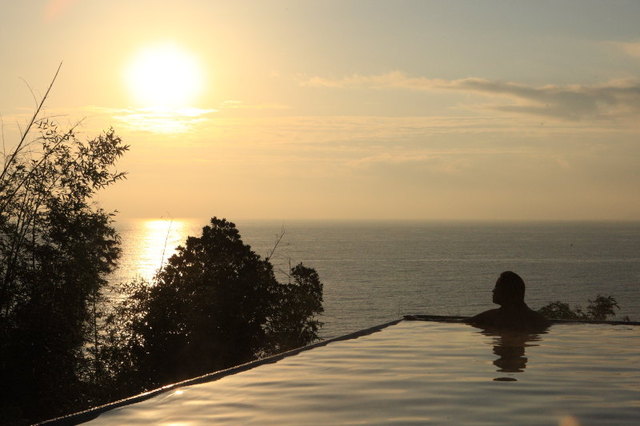 朝陽を眺めながらの朝プールで一泳ぎ。プライベートプールなだけに、時間を気にせず泳げるのは最高です♪
