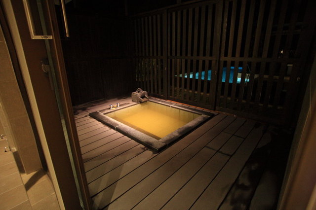 VIALAは、全室温泉露天風呂付でボタン1つの簡単操作で蛇口から温泉が勢い良く湧き出て自動で止まります。程良い温度ではありますが、湯温は湯と水でお好みに調整可能です。露天で身体を温めては、30℃ほどのプライベートプールで一泳ぎの繰り返し。ある意味良い運動です(笑)シャンパーニュを片手に温泉は、贅沢過ぎる至福のひとときです♪