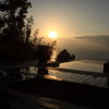 露天風呂の格子扉を全開放し、美しく神聖な朝陽。鳥のさえずりに、木々の揺らぎ、さざ波の繰り返す音。神秘的な朝を迎えます♪