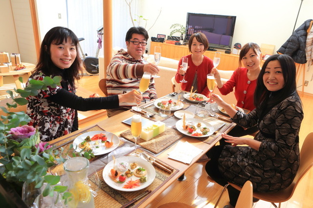 今回のシェフである菅沼映里ちゃんとのご縁を繋いでくれた鴨藤菜奈子ちゃんと姉の松井綾子さん、そして大好きなフレンチの「連理 LENRI」の尾上成彰シェフをお招きしてインドカレーの会スタートです♪