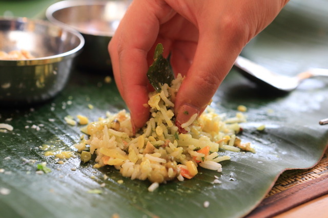 「あちらでは本当は手で食べるのですよ」の一言に火が付いてしまったわたし達は、皆で一斉に手で食べ始めることに!(笑)混ぜて摘んで、親指で押し出すように口に運ぶ食べ方は、やってみるとスプーンで食べるより遥かに美味しい!(驚)これまた初めての体験で、何だか目から鱗的な感覚に陥りました!ハマりそうで怖いです♪