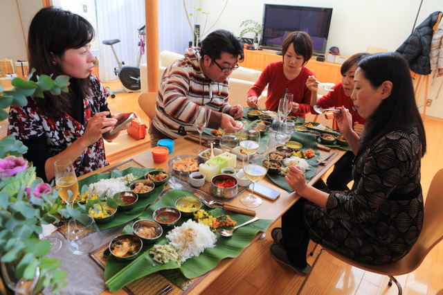 先日開かれた鴨藤菜奈子ちゃんの結婚披露宴にて同席した菜奈子ちゃんの職場の先輩の菅沼映里ちゃんが、趣味の1つとして「インド料理」を作ることが好きで、「いろいろな場所でイベントを立ち上げ、皆にもっとインド料理の素晴らしさを広めたい!」と話していたことをキッカケに、まずは我が家で試食会をしてもらおうとお招きし、「インドカレーを食す会」と題して4種のインドカレーを初体験いたします!準備は、ほとんど自宅で済ませて来てくれたようで、温め直したり、盛り付けたりと女子4人も揃えば、手際良く事が運びます♪