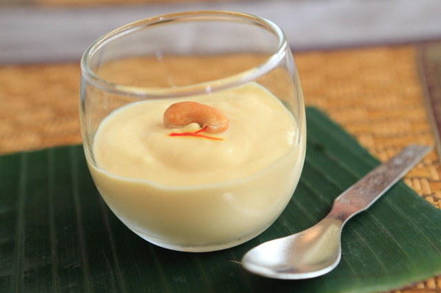 〆のデザートまでも用意してくれたおかげで、インド料理のフルコースを堪能した日。マンゴーのピューレをヨーグルトに混ぜて作る、こちらのマンゴーヨーグルトは、食後にとっても美味しかったです♪