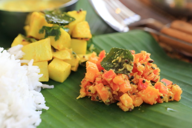 海老芋のコリアルにも人参のトーレンにもカレーリーフが入っていて、やはり美味しい!人参のトーレンは、ケララ州の地元料理だそうです。野菜を美味しく一杯食べれてインド料理はヘルシーなものが多いですね♪