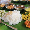 インドカレー4種とサラダ3種をバナナの葉に乗せて