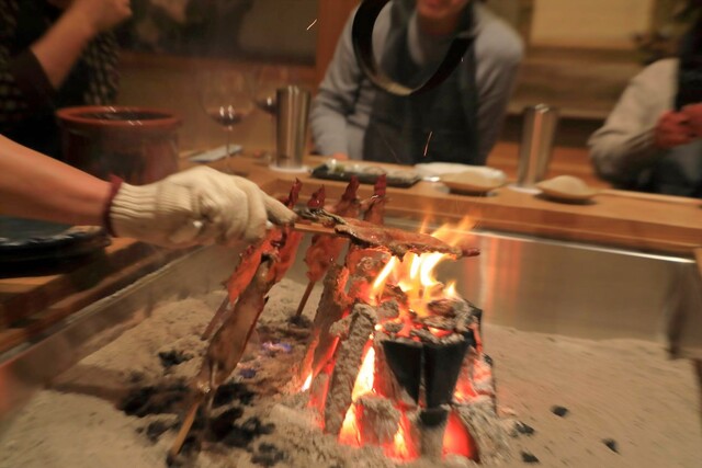 本館、別館共に、提供する焼き物は、当主と三男が一本一本丁寧に焼き上げていき、何処か懐かしさを感じさせる田舎風のおもてなしを提供するのが「柳家」のスタイルで、この日は三男の山田剛之(Masashi Yamada)氏が焼きを担当してくれます。「柳家」は、世界各国の優れた美食店を1,000店紹介するフランスのレストランランガイド「La Liste 2019(ラ・リスト)」においても、世界のトップ10スコアにランキングされ、郷土料理賞もダブル受賞と輝かしい功績を残しており、そこから毎年授与され、「La Liste 2022(ラ・リスト)」では、コロナ禍ではあったものの渡仏され、剛之(Masashi)氏が満を持してその授与式に登壇された際の裏話や珍道中話も楽しく伺うことができました!