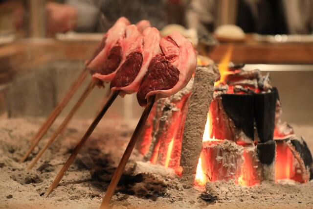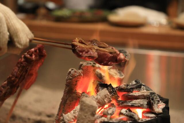 炭の火入れに勝るものは無し。時期が限定される旬の食材の新鮮な肉を新鮮な内に捌き、囲炉裏で焼き、脂と血が滴る熱々の状態で頬張り、肉本来の旨味を味わうとはまさにこのことで、これぞジビエ!と思わせてくれます!