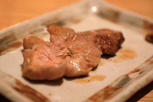 繊細で柔らかな肉質はジューシィーで、仕上げに秘伝の漬けダレに潜らせているため、そのままでも十分美味しいのですが、柚子胡椒を添えることでパンチの効いた味わいに!