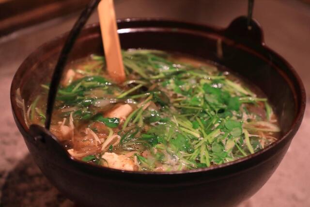 お野菜たっぷりで食べ応えがあり、素材それぞれの旨味はもちろんのこと、濃厚な鴨の脂の甘味と旨味がほとばしる絶品鴨鍋!辛味を楽しむ一味と香りを楽しむ七味はお好みで!